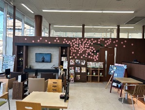 と言う事で、最後の最後でひねり出されたのが日立と言えば、『さくらまつり』でした!桜をイメージして、サービス待合スペースに表現する事で一件落着!!